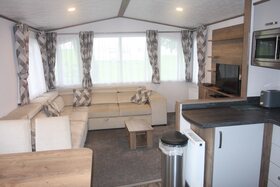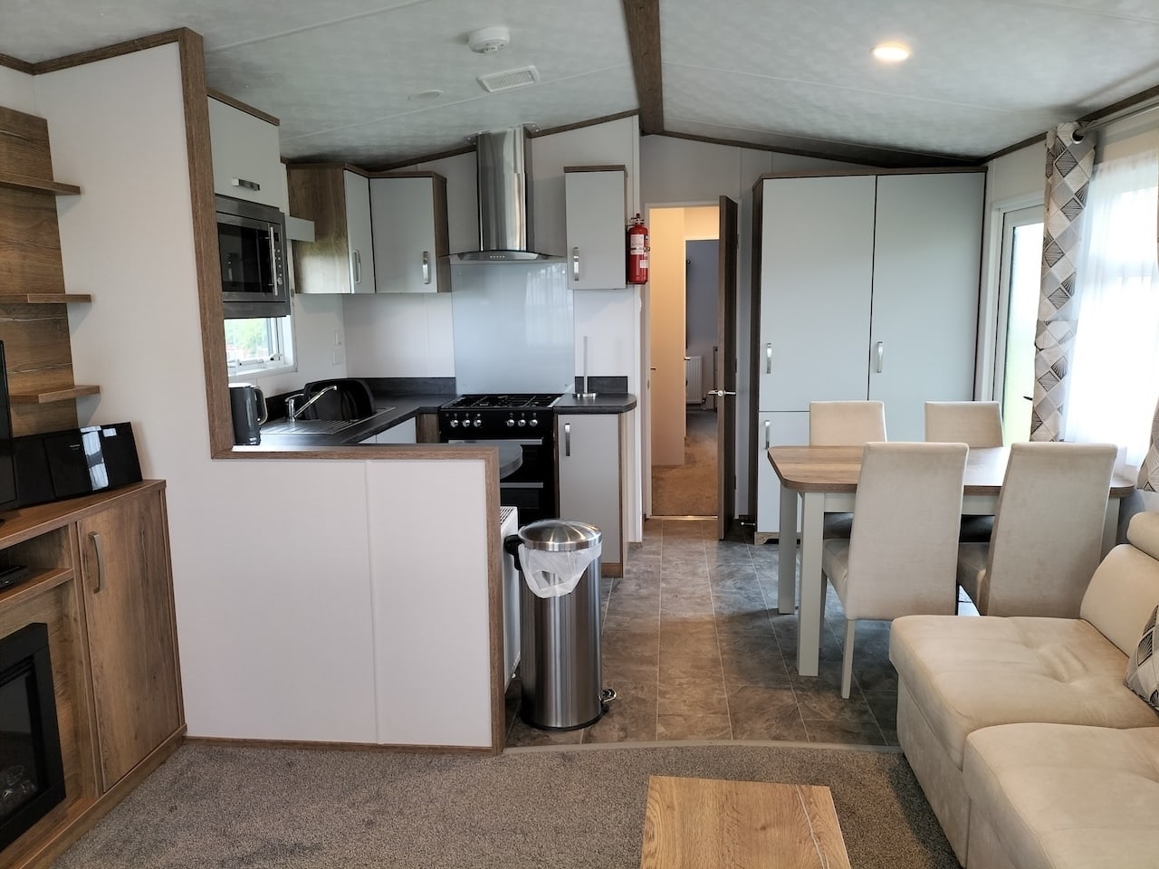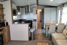 The living space is light and open, with everything you need for a home-from-home experience.