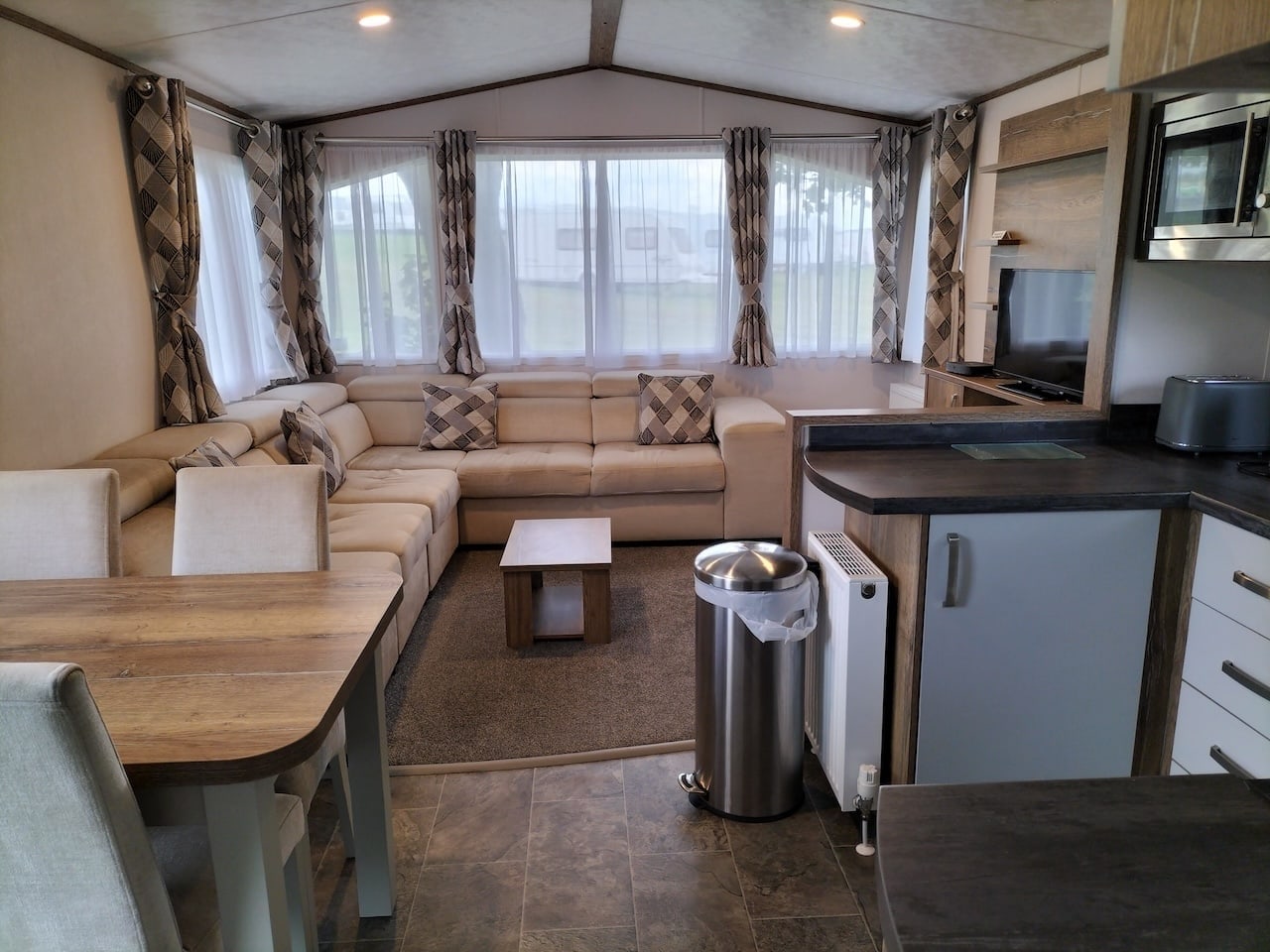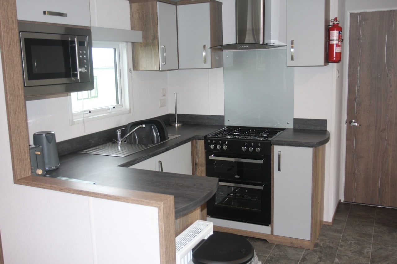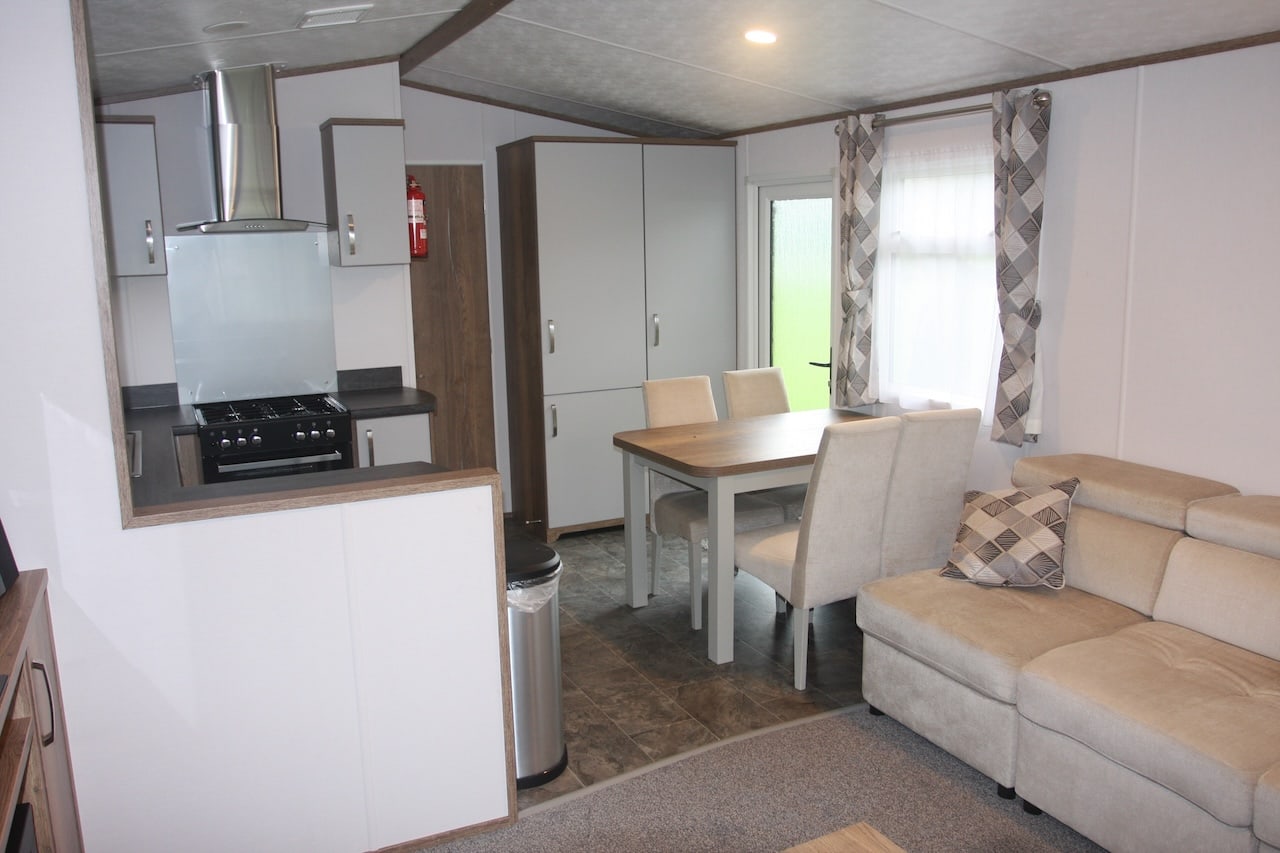 The living space is light and open, with everything you need for a home-from-home experience.